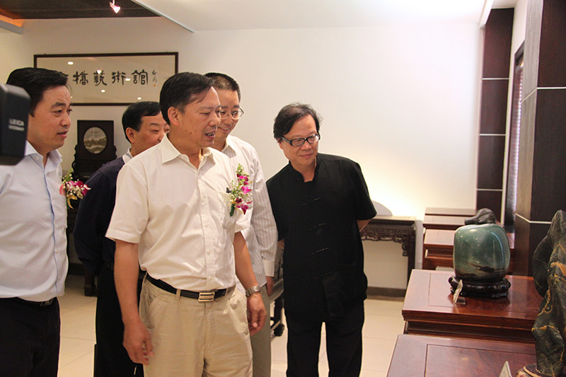 2012年9月19日,为弘扬中国石文化,推动爱石、赏石、藏石文化在我市的发展和繁荣,金桥奇石艺术馆作为浙江省首家民办奇石艺术馆在余姚举行了盛大的开馆仪式。 浙江省国土资源厅厅长王永民先生,市委常委宣传部长潘银浩先生,市政协副主席朗霞街道党委书记徐栋芳先生,省奇石协会会长王嘉明先生,市文广新闻出版局局长熊培军先生,市文联主席张建华先生,民政局副局长何剑波先生,财政局总经济师周益忠先生,建设局副局长倪定华先生等各界领导,以及来自全国各地的奇石爱好者、媒体朋友出席了此次盛大的开馆仪式。 浙江省国土资源厅副厅长王永明先生、中共余姚市市委常委宣传部部长潘银浩先生为金桥奇石艺术馆揭牌。 董事长鲁文军先生(左)与浙江省国土资源厅副厅长王永明先生(右)合影 揭幕仪式结束后,各领导、嘉宾移步展厅,欣赏来自世界各地多姿多彩的奇石展品。
